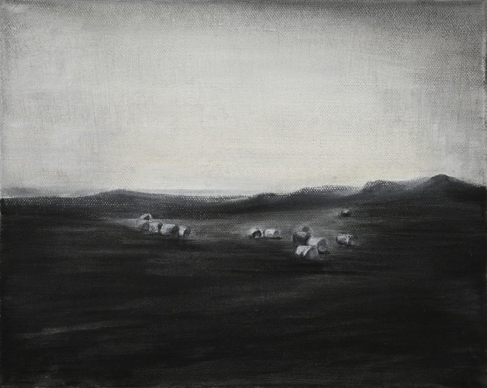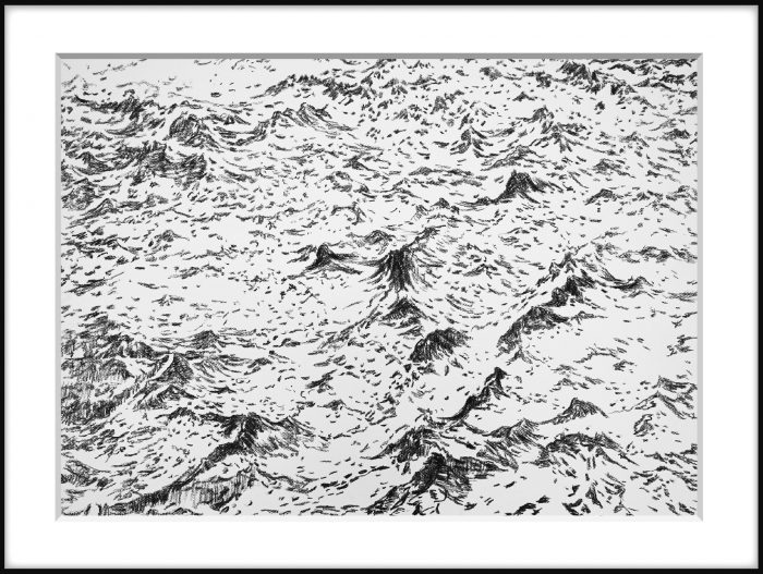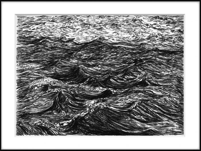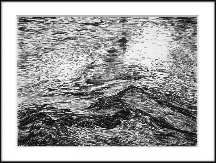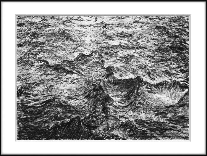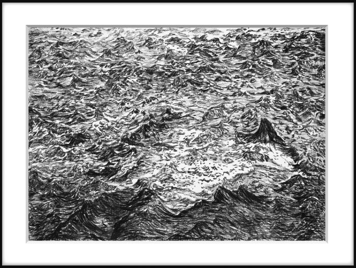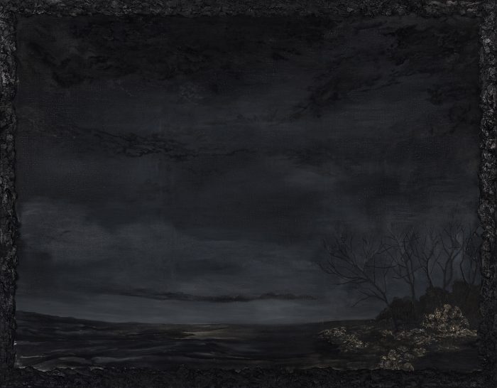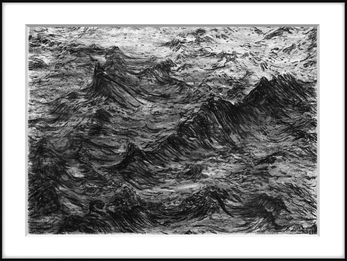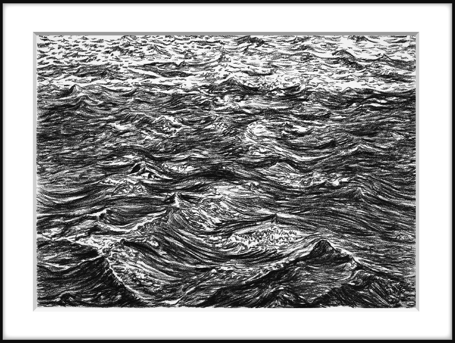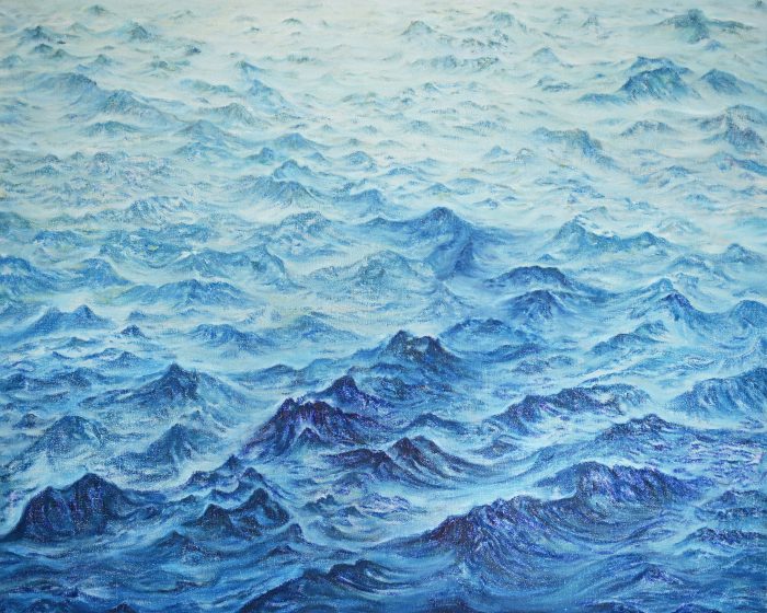 在往返于柏林与北京度过双城生活的近些年里,孟煌从未割舍风景与自身创作语言的纽带。随着阅历的不断丰厚,孟煌也开始越发瞩目于纯粹且意涵广博的景物。于是水的意象逐渐频繁的出现在孟煌的画面之中,直至占据了他近年来几乎全部的绘画创作。去追溯九十年代《失乐园》系列时期的作品就会发现,其实有关水的伏笔早已埋下。在当时,水作为风景之中的局部被孟煌带有直觉性地取材。毋庸置疑的是那时的水由黑色染成,与孟煌画笔下的其他景色别无二致。在经过了二十年断断续续对水的描绘之后,直觉性慢慢为自发性所替代,由此水不再是有关水的风景本身,而是成为了被提炼之后的范式。